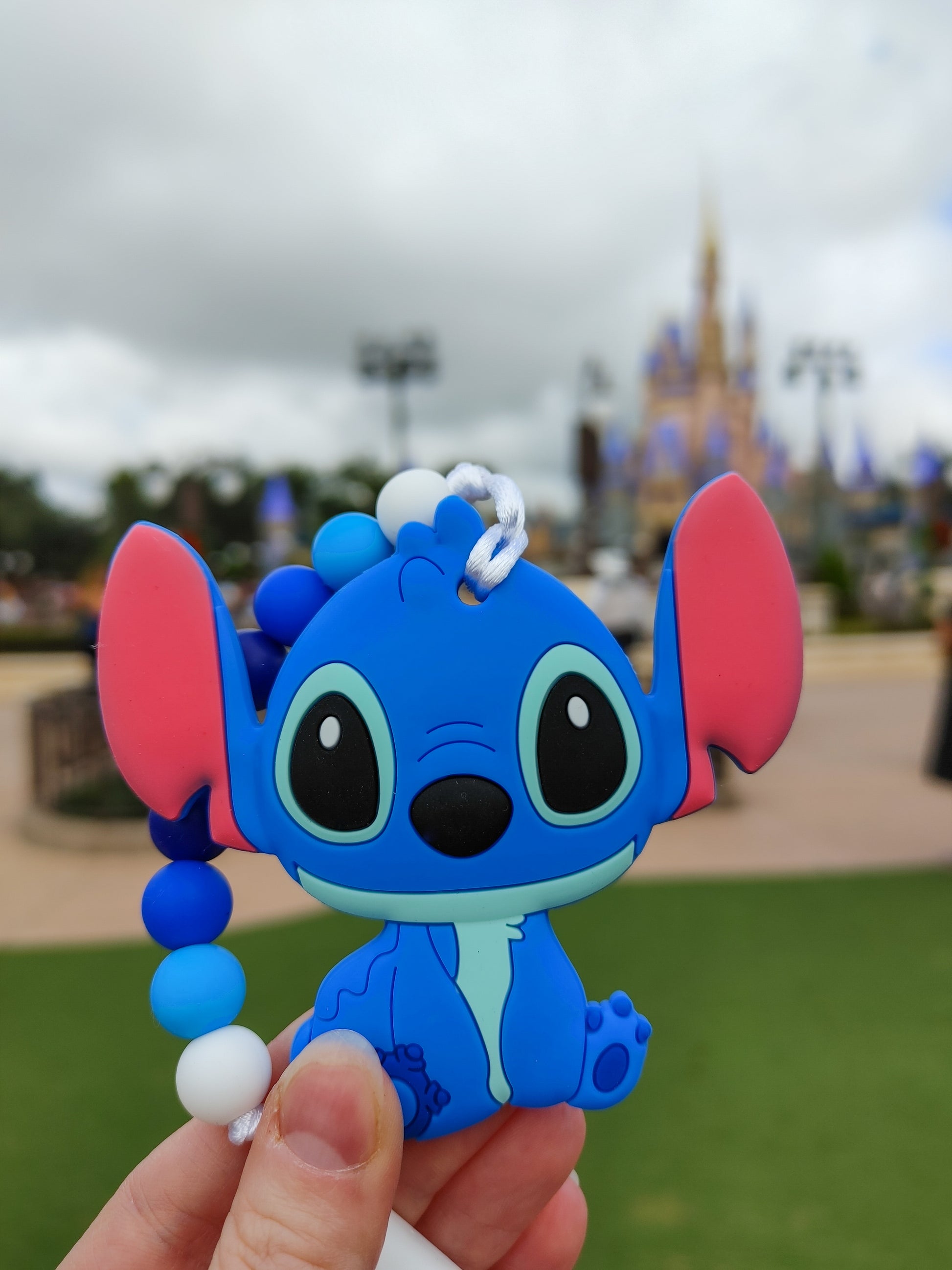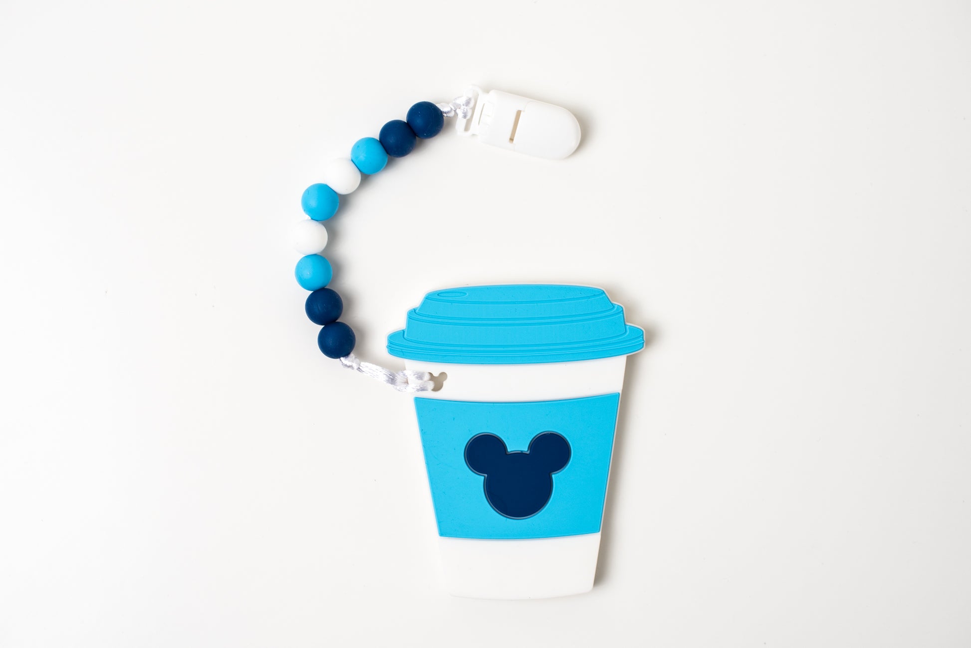 Custom silicone teether with 9 silicone beads and clip
